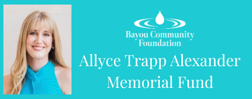 - Allyce Trapp Alexander brightened the world during her 31 years of life. On behalf of the Trapp family and friends, Bayou Community Foundation is honored to host a charitable fund that keeps her light shining brightly for many years to come. Your tax-deductible gift to the Allyce Trapp Alexander Memorial Fund will support the work of nonprofit organizations and schools close to Allyce’s heart and touch the lives of so many, just like she did with her generous and courageous spirit.